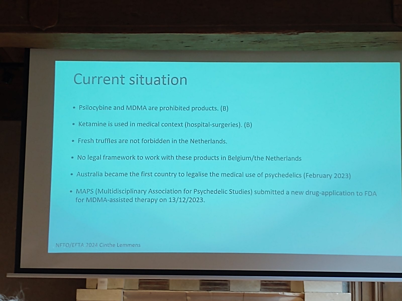 • Cinthe Lemmens iz Belgije predstavila je mogućnosti primene PAT (psihodelične asistirane terapije). Ova kontroverzna tema budi mnoštvo pitanja: da li su psihodelične supstance ključ ka dubljem isceljenju, ili je u pitanju preterano hypeovanje? U vremenu kada se mentalno zdravlje nalazi u fokusu, ova prezentacija nudi nove načine razmišljanja i nove horizonte u sistemskoj terapiji.