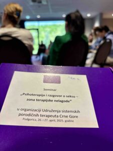Sa velikim zadovoljstvom vas obavještavamo da je dvodnevna radionica na temu „Psihoterapija i razgovor o seksu – zona terapijske nelagode“, koju je organizovalo Udruženje sistemskih porodičnih terapeuta Crne Gore, uspješno održana 26. i 27. aprila 2025. godine u hotelu VOCO u Podgorici.